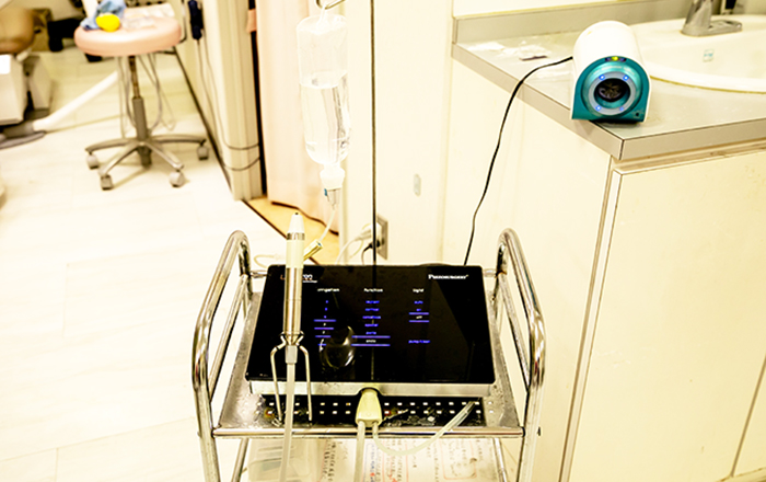 ピエゾサージャリー(超音波骨切除機)を用いて抜歯の簡素化をして、術中・術後の痛みの軽減を図ります。