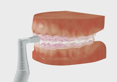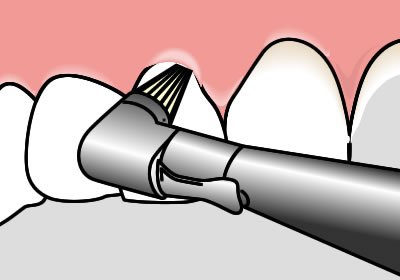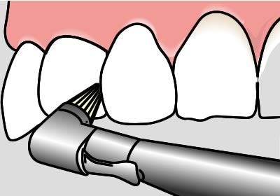 細かい歯石、歯垢を専用の研磨剤と柔らかい掃除器具を用いておとします。